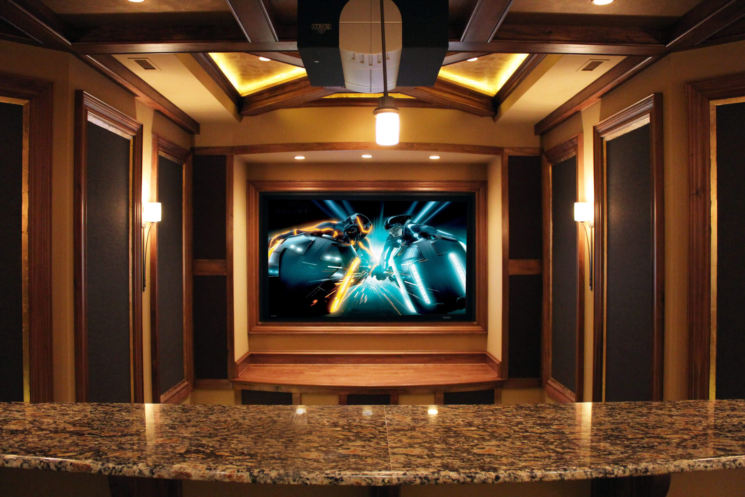 Theme rooms offer you the ultimate opportunity for personalization of your space. Gather and display memorabilia from your favorite sports teams. Highlight certain geographical areas like a favorite vacation destination, cityscape, the southwest or underwater. Go Hollywood style with the Red Carpet and Oscar night, modern director’s cut, movie posters or even display favorite movie scenes through framed pictures or murals. Movie Genres provide great inspiration. Science fiction rooms call for rich dark colors that provide function in addition to flair. Historical fiction and documentary style capture time periods and events, like the Antebellum South a la Gone with the Wind or the moon landing from The Right Stuff. Offer your tribute to John Wayne in the Old West Saloon themed room or to Charlie Chaplain in the Old Vaudeville Theater room. Anything that inspires you is a great starting place for developing your home theater concepts.